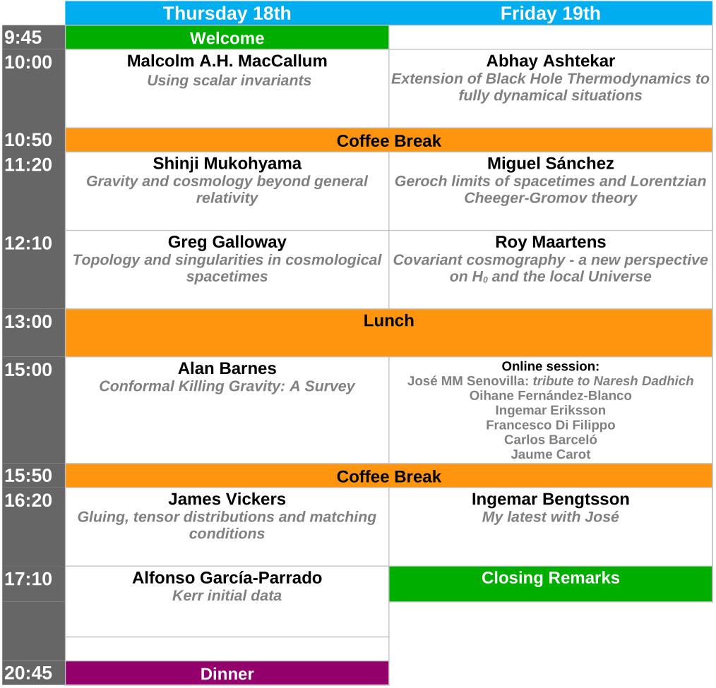 Please join us on December 18th and 19th for the IX Cosmological Olentzero Workshop / José's Fest, hosted at the University of the Basque Country (UPV/EHU), Bilbao. This year's occassion will be an informal meeting to celebrate José M. M. Senovilla 65th anniversary.